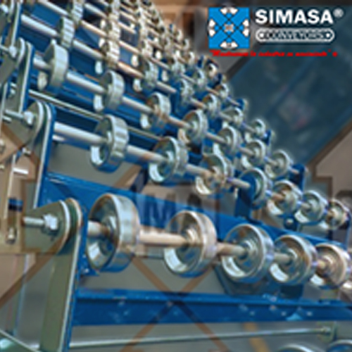 sobre ejes, que permiten el desplazamiento suave de los productos a lo largo del transportador.